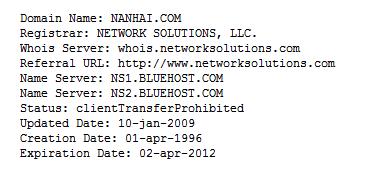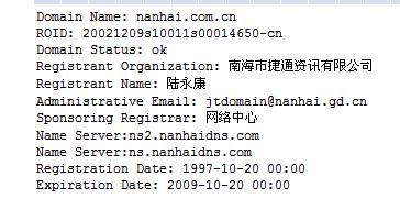 搜索网络,我们发现,第一经典域名nanahai.com1996年就被人收入囊中,现在是美国的一个从事教育义务的公司中文网站的主域名。被誉为公司企业最经典的.com.cn类域名Nanhai.com.cn1997被注册,现为南海市捷通资讯有限公司所有。nanhai.net连同nanhai.net.cn于1997年被注册,现为广东佛山电信网站所用。Nanhai.org被广东注册,仅有nanhai.org.cn为设立在海南的中国南海研究院所有,而专门留给政府部门使用的nahai.gov.cn连同广东地域域名nanhai.gd.cn也于1997被注册,成为佛山市南海区政府信息网站的域名。